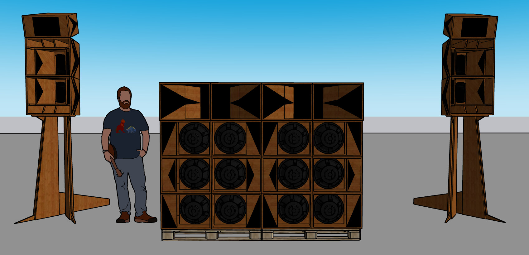 Avec 6 SATH115-RM et 4 kick horn court en 15nmb1000 adapté à partir de la section kick du SA3V-1581 en préparation. (Le kick de cette T3V fait les mêmes dimensions que le SATH115 !)