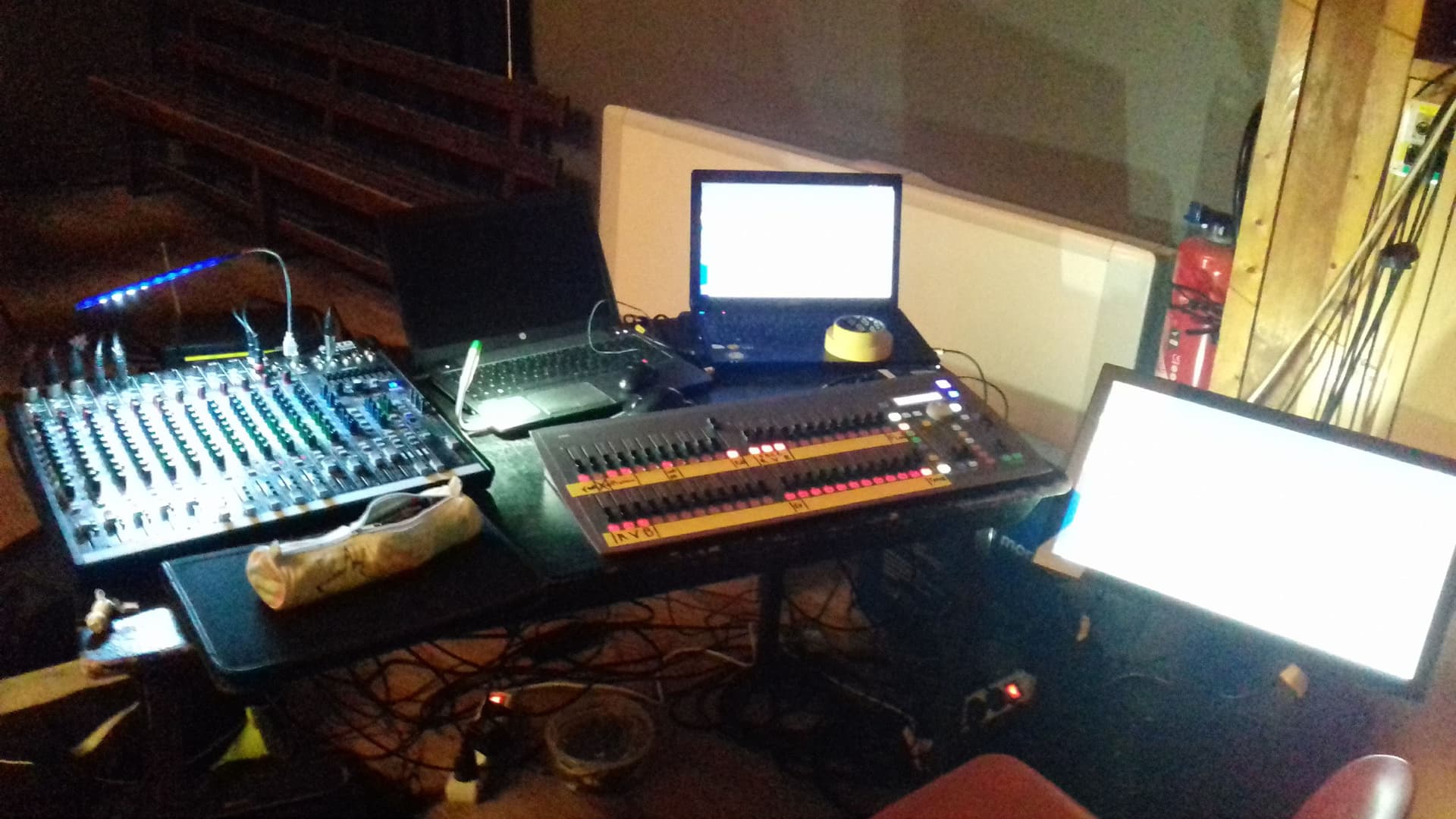 Et oui, derrière, ou plutôt devant le feu des projecteurs se trouve contrôleur et console d’éclairage !