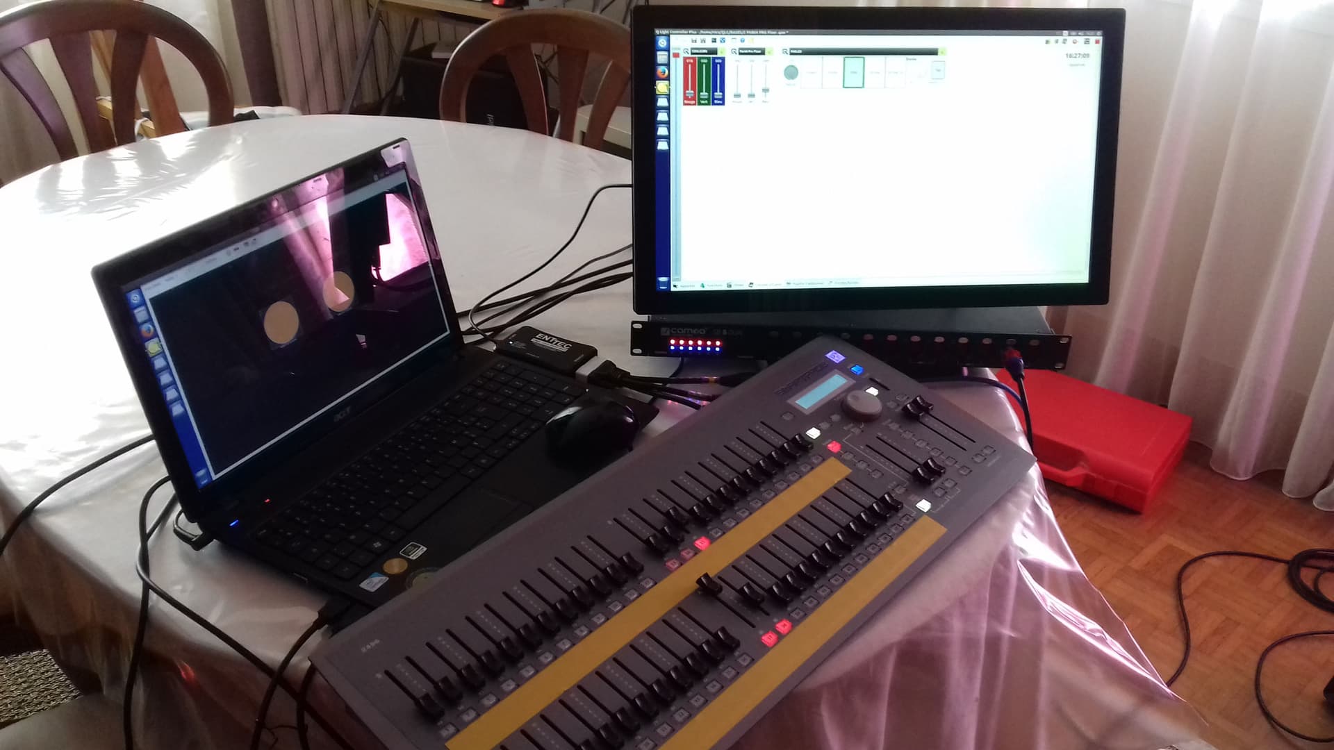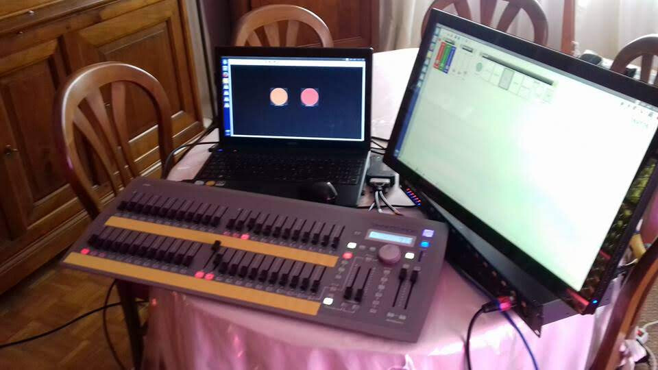 Pourquoi ce choix ? Car à l’instar de GrandMA onPC, où on peut raccorder en DMX in une vraie console lumière qui vient piloter le logiciel, je voulais pouvoir jouer sur un vrai desk mon éclairage.