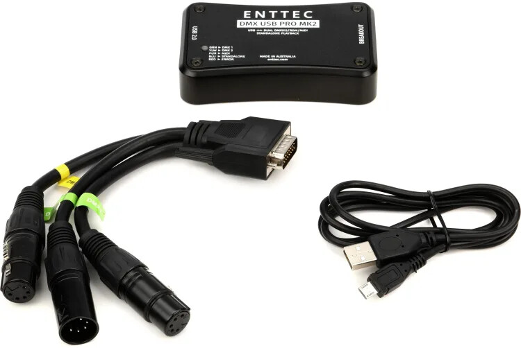 Pour ma part, j’ai commencé mon expérience avec une Enttec Pro Mk2, dont son seul défaut, est son port micro-USB qui a fini par mourir par la force de l’âge.