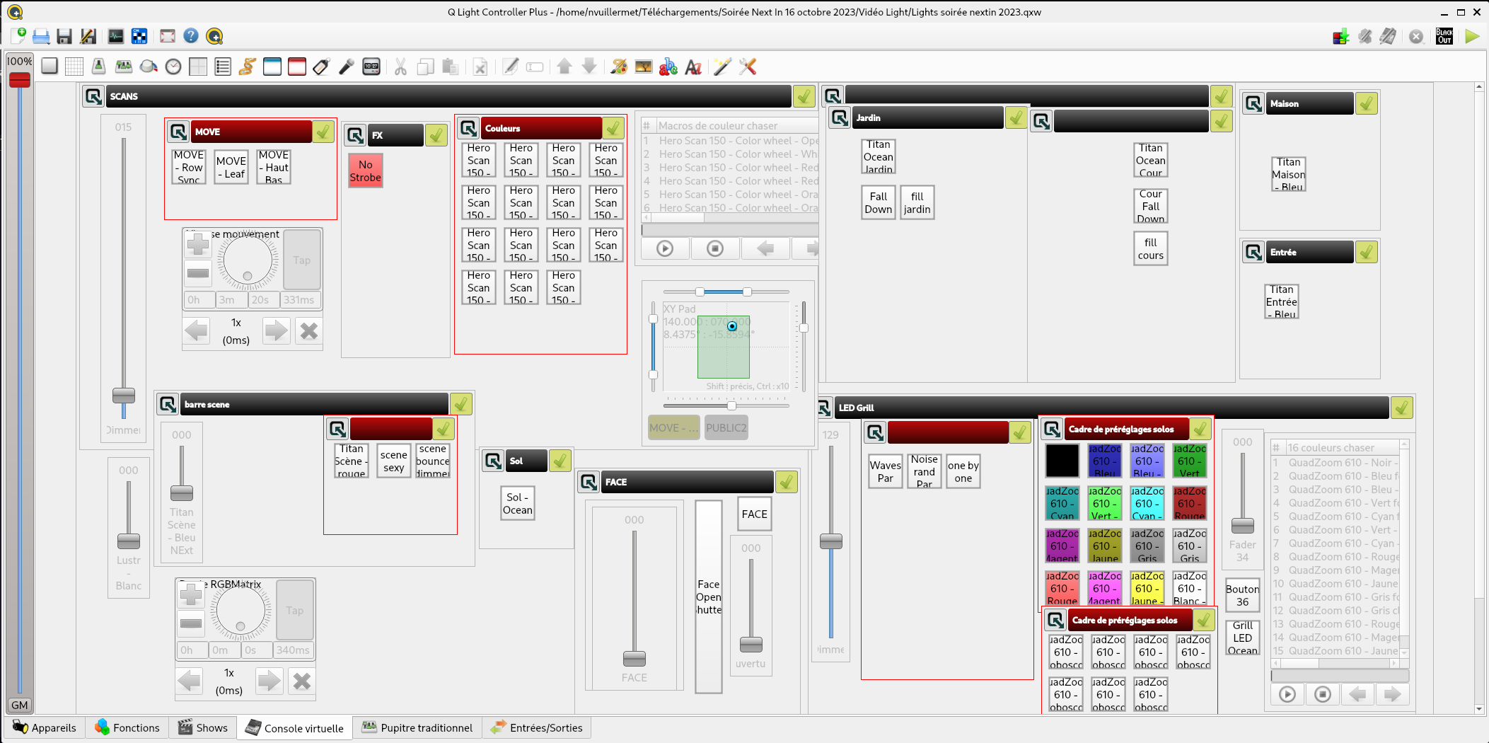 Cependant cela reste un excellement challenger sur les petites installations, mais pour ma part, j’ai atteint les limites ! C’est d’ailleurs sans regret que je me tourne vers GrandMA, tout en gardant des yeux sur QLC+ !